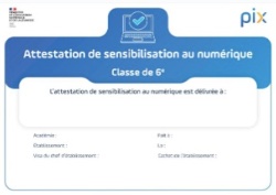 Cycle 3 ⇒ 6ᵉ : Depuis la rentrée scolaire 2024, l'attestation de sensibilisation au numérique est obligatoire pour tous les élèves de 6ᵉ (Voir la pièce jointe : Flyer_parents_attestation_6ᵉ.pdf).