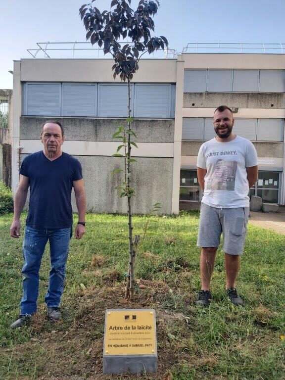 L'arbre de la laïcité (un cerisier-fleur qui ne demande qu'à s'épanouir) planté le 9 décembre 2020 en hommage à Samuel Paty par les élèves du Conseil de Vie Collégienne, possédait une plaque mais il manquait une stèle en béton.
